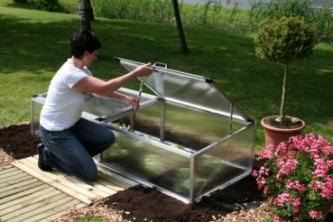 Für einen gelungenen Frühstart in die Gartensaison mit einem solide verarbeiteten Frühbeet mit großer Öffnungsklappe inkl. Handaufsteller. Die Verglasung erfolgt komplett mit 6 mm ISO-Hohlkammerplatten.