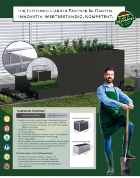 Bequem lässt es sich mit unserem Hochbeet von der Anzucht bis zur Ernte arbeiten. Im Frühjahr erwärmt sich das Beet schneller und speichert im Herbst die Wärme besser. So wird das Pflanzenwachstum gefördert. Für die Befüllung lassen sich gut Grünschnitt und Gartenabfälle verwenden.